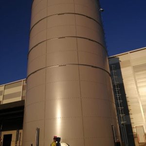 Glass-Fused-to-Steel (GFS) is glass that has been fired (heat-processed) in a kiln which facilitates the interfacial fusion reactions that combine the two materials. For there to be a fusion of two materials, there must be a chemical bond at a molecular level. Climate LLC is the market leader in the supply of Glass-Fused-to-Steel Tanks and Silos. Our company has been providing durable and cost effectively engineered containment solutions in Municipal, Industrial, Commercial, and Agricultural environments worldwide. We export to over 52 countries and in excess of 10,000+ tanks and silos have been installed worldwide, each with the ability to withstand local environmental extremes, from the cold of the arctic to the heat of the desert. GFS sheets are produced under strict quality control, without any deviations from the standards. Each sheet is tested individually, and if a defect is discovered, it will be recycled, not repaired. Mastic is used as a sealant and designed for exactly that purpose. L-shaped, galvanized steel profiles are used for the base and the top of the tank fixings. They are curved to each tank individually. Depending on the size of the tank, a wind stiffener is also used, to withstand both the contents and the wind load. Our tanks are equipped with inlet, outlet, overflow and drain connections as standard. According to customer requirements, connections are adapted according to the project specification. Very often it is necessary to install the tank with insulation. We offer a submersible 3 kW heater and external insulation. For each project specification, we recommend the right solution, in order for the stored substance not to freeze, even in the most extreme weather conditions. According to customer requirements, we equip tanks with accessories – side shell manway, caged ladder, service platform, etc.